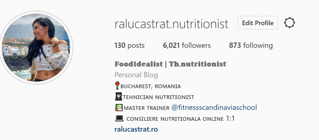 Numele meu este Raluca Strat si sunt Tehnician Nutritionist acreditat de catre Ministerul Educatiei in cadrul scolii Fitness Scandinavia si Master Trainer in Nutritie, in cadrul aceleasi scoli, certificată ca una din de cele mai importante instituții în educația de fitness.